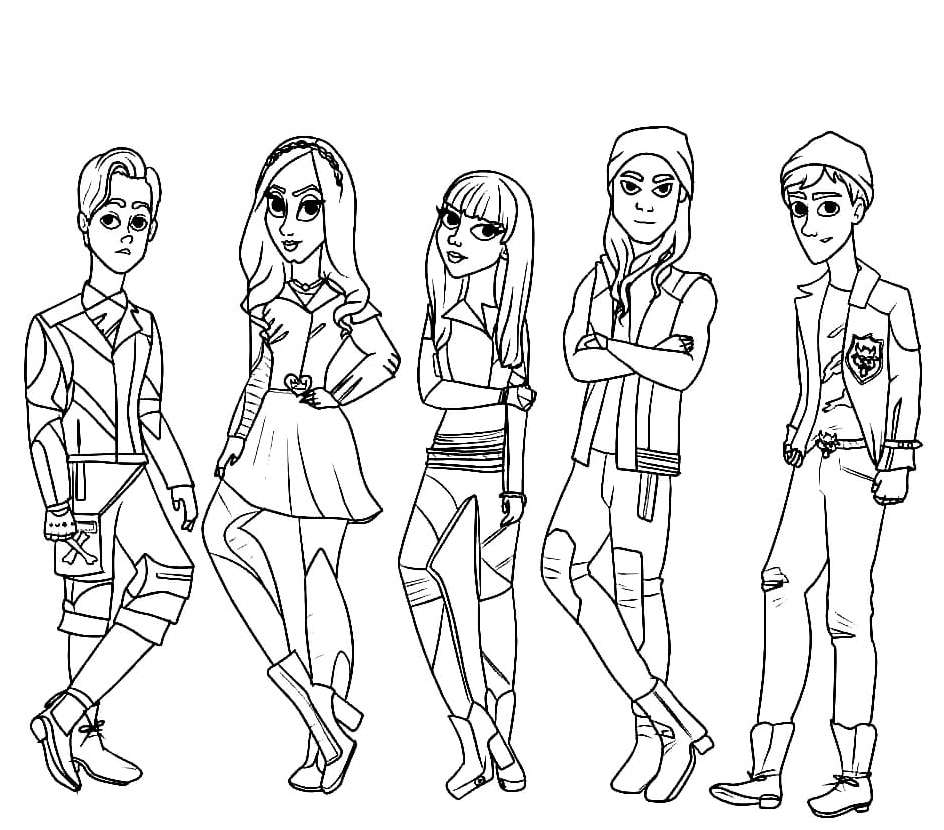 MundoColorir oferece Descendentes Desenho Disney em JPEG com resolução de 944 × 830 (aprox. 289.52 KB). Sinta-se à vontade para baixar e imprimir, ou colorir online diretamente nesta página. É totalmente grátis e fácil.