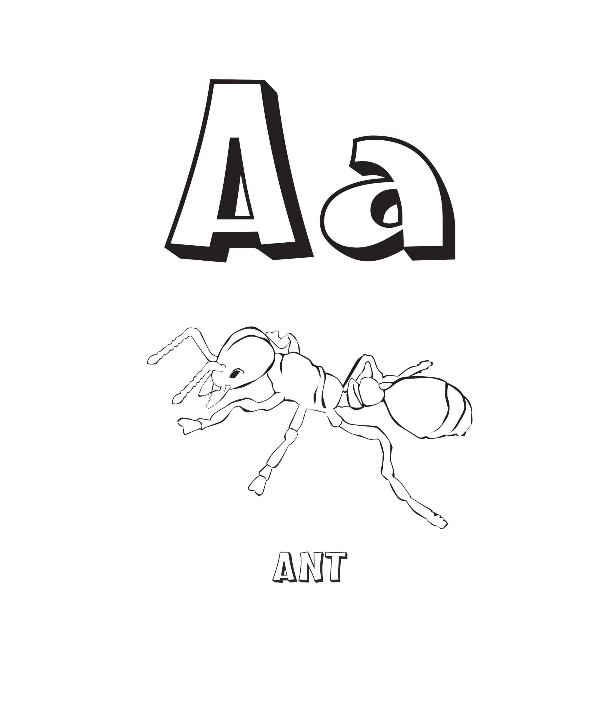 Descubra mais páginas lindas na categoria Letra A semelhantes a Página para Colorir de Formiga