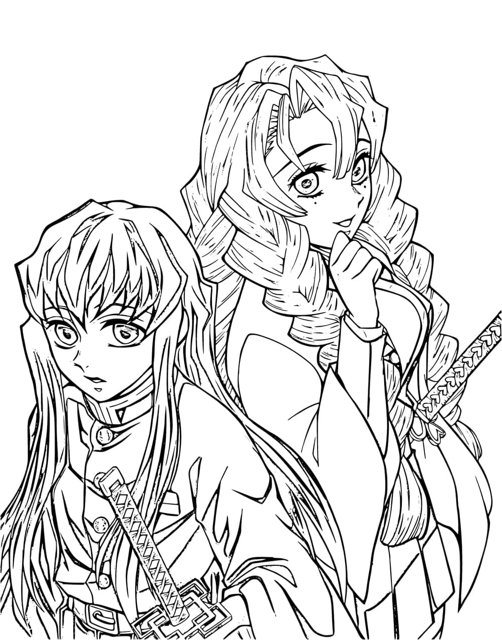 MundoColorir oferece Página para Colorir Muichiro Tokito e Mitsuri Kanroji de Demon Slayer em JPEG com resolução de 1002 × 1277 (aprox. 536.26 KB). Sinta-se à vontade para baixar e imprimir, ou colorir online diretamente nesta página. É totalmente grátis e fácil.