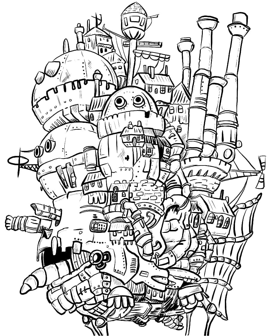 MundoColorir oferece Ilustração do Castelo Mágico de Howl em JPEG com resolução de 902 × 1127 (aprox. 545.9 KB). Sinta-se à vontade para baixar e imprimir, ou colorir online diretamente nesta página. É totalmente grátis e fácil.