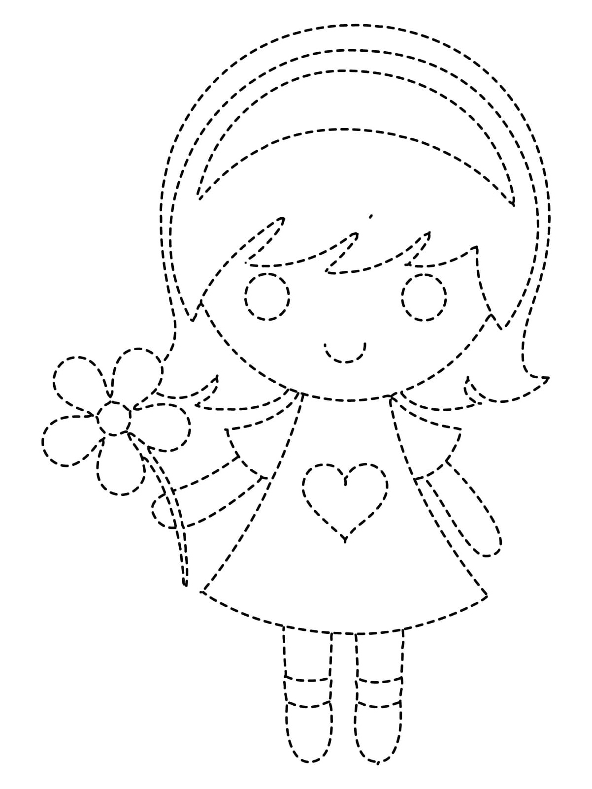 Descubra mais páginas lindas na categoria Rastreamento para Meninas semelhantes a Folha de Atividades para Contornar uma Garotinha Fofa